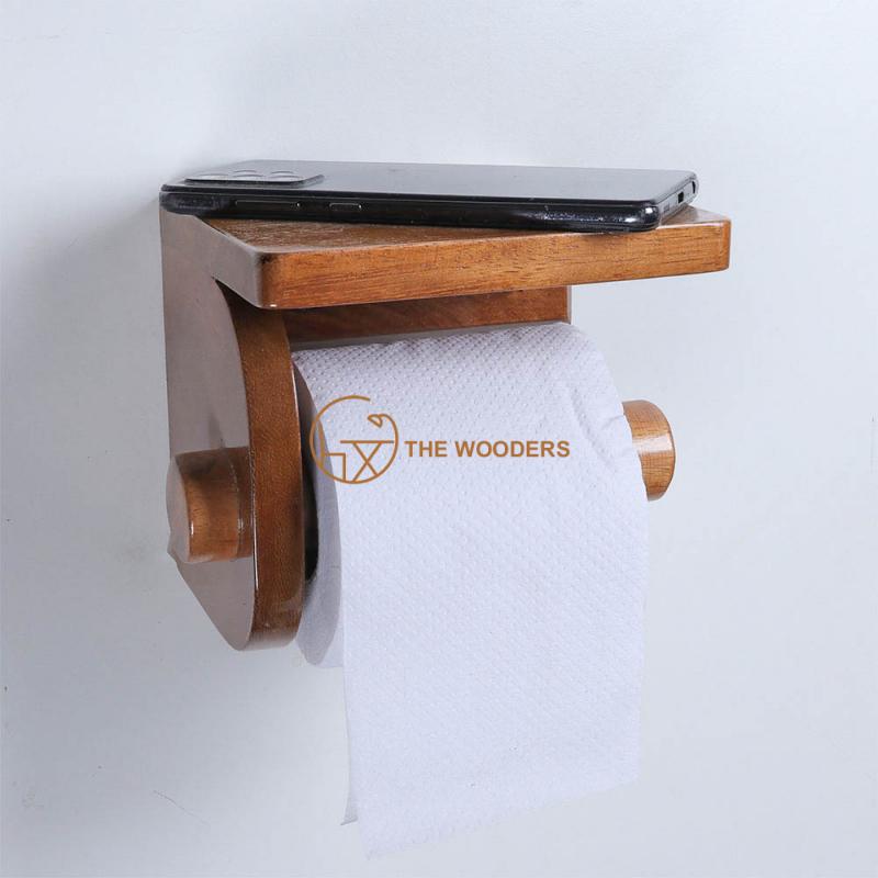 Wooden Toilet Paper Holder/ Tissue Holder with Phone Holder